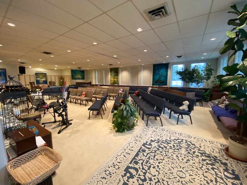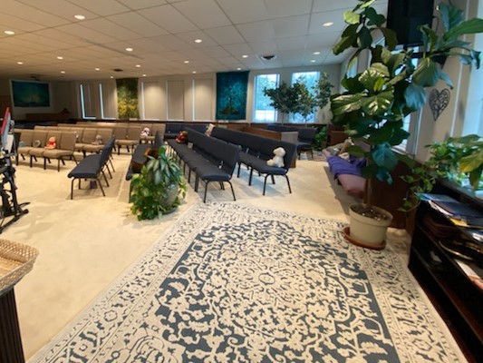 Towards the end of last year (2018) , we were asked a question that stirred in our soul. Why would we have such a traditional (old fashion and dated) sanctuary to do services in, when we have such an inspirational message, which is new and transformative to so many people? So we began to explore the idea and came up with the Tree of Life theme, which has 12 fruits (Powers or Charka Centers) that needed to be partaken of to nourish our souls, and we wanted to have a room where people could enter into and feel like it was a living room for their soul. So we went to work and we have finished with stage two of the renovation. The energy feels so different and amazing.